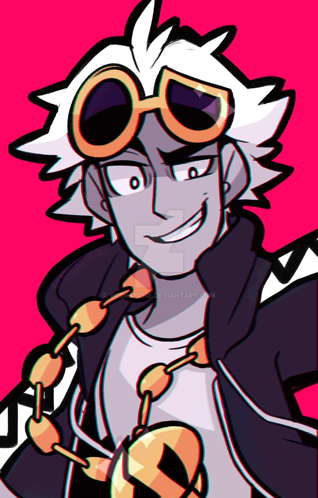 Description: A drawing of a man with glasses and a hat on his head and a spoon in his hand and a pink background.