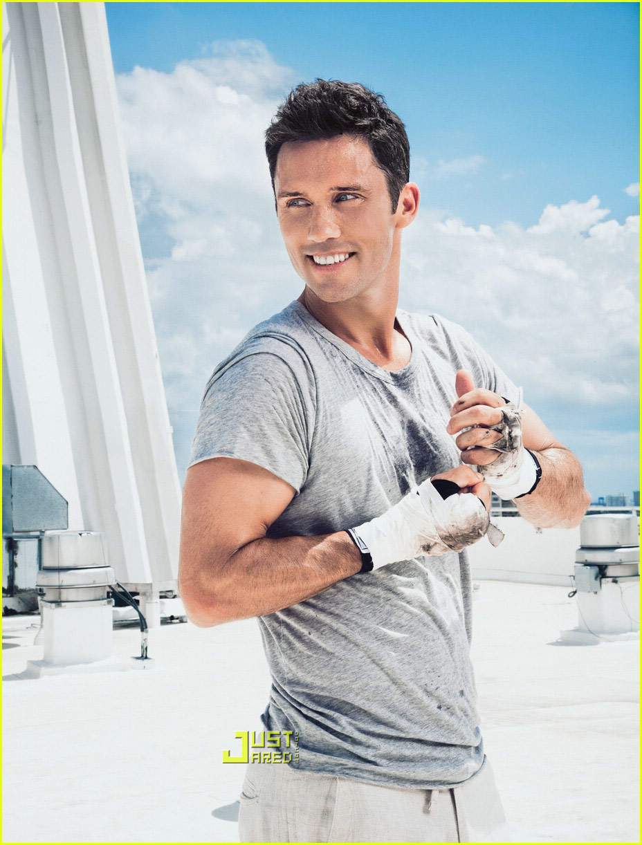 Description: A man with a glove on his hand posing for a picture in front of a building with a sky background.