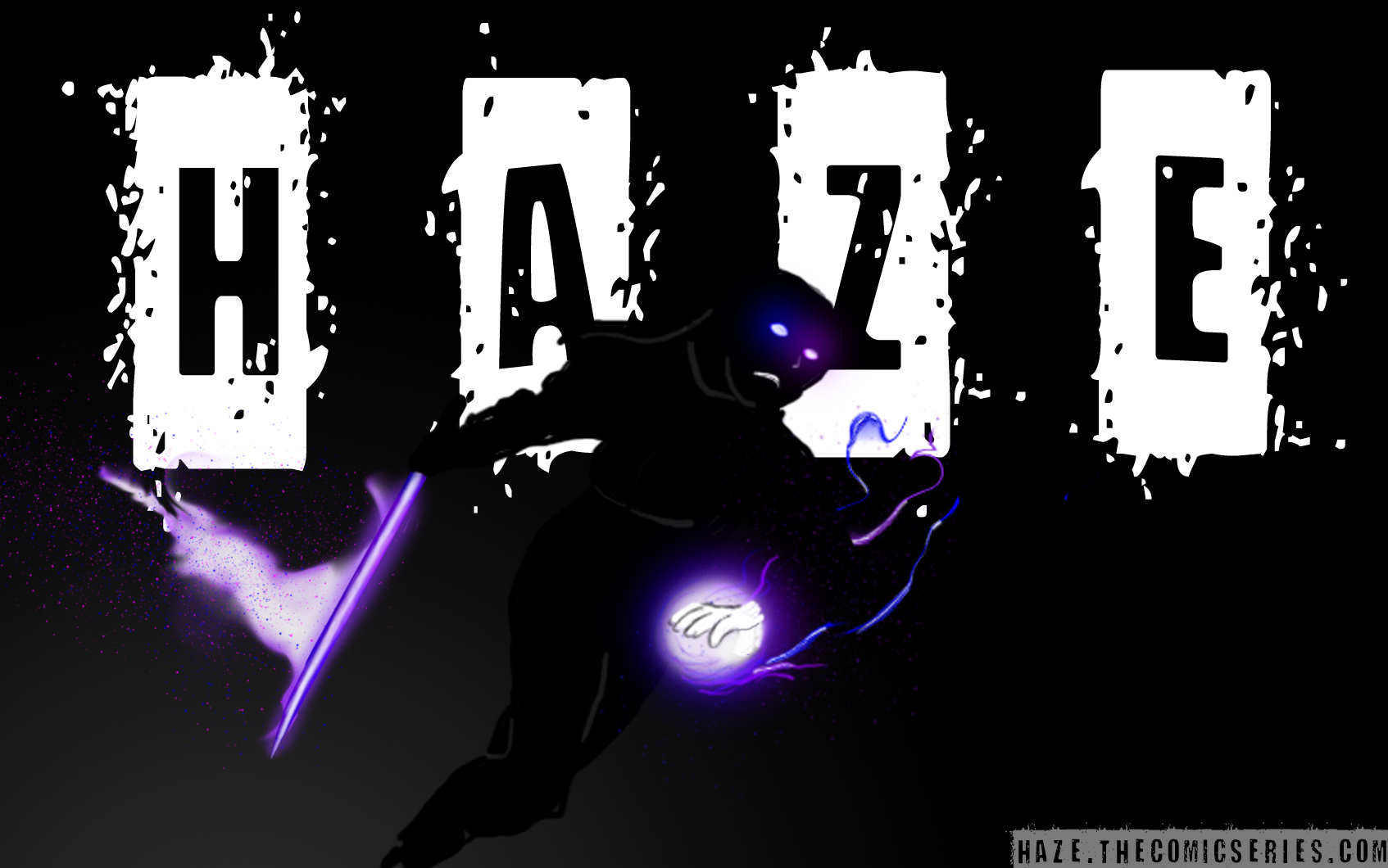 Description: A stylized image of a man with a glowing purple light in his hand and the word haze in the background.