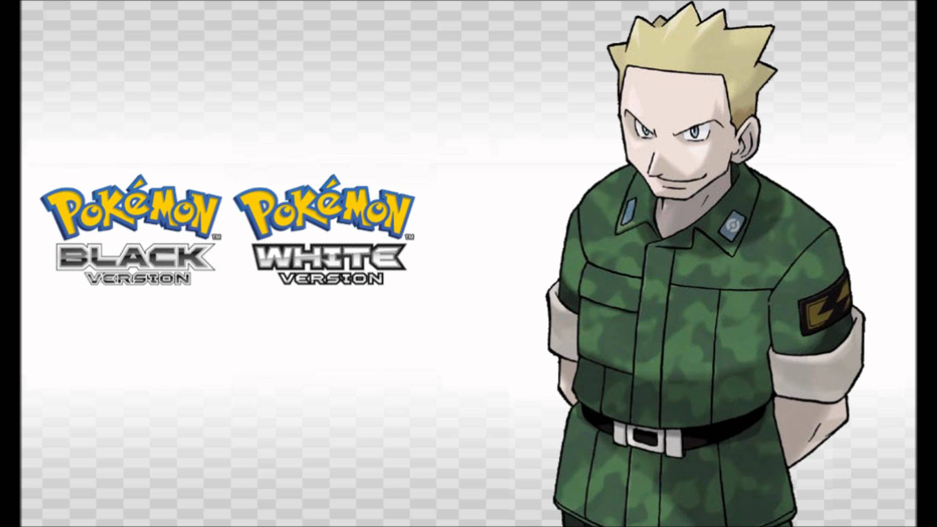 Description: A man in a green uniform with a black belt on his chest and a white background with a black and yellow pokemon logo.