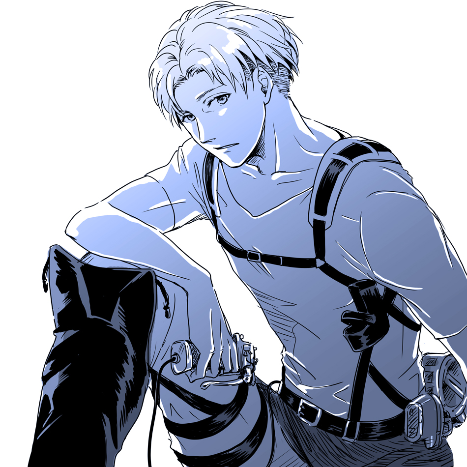 Description: A drawing of a man with a gun in his hand and a harness on his shoulder.