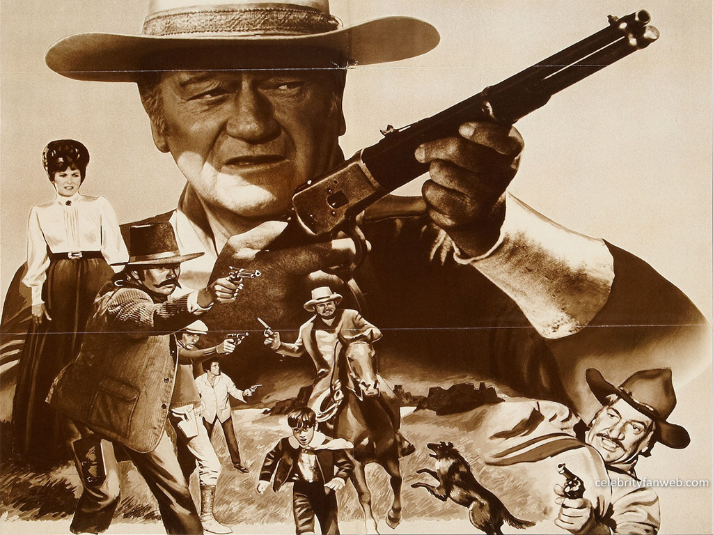 Description: A poster of a man holding a gun and a woman holding a gun in her hand and a man in a hat holding a gun.