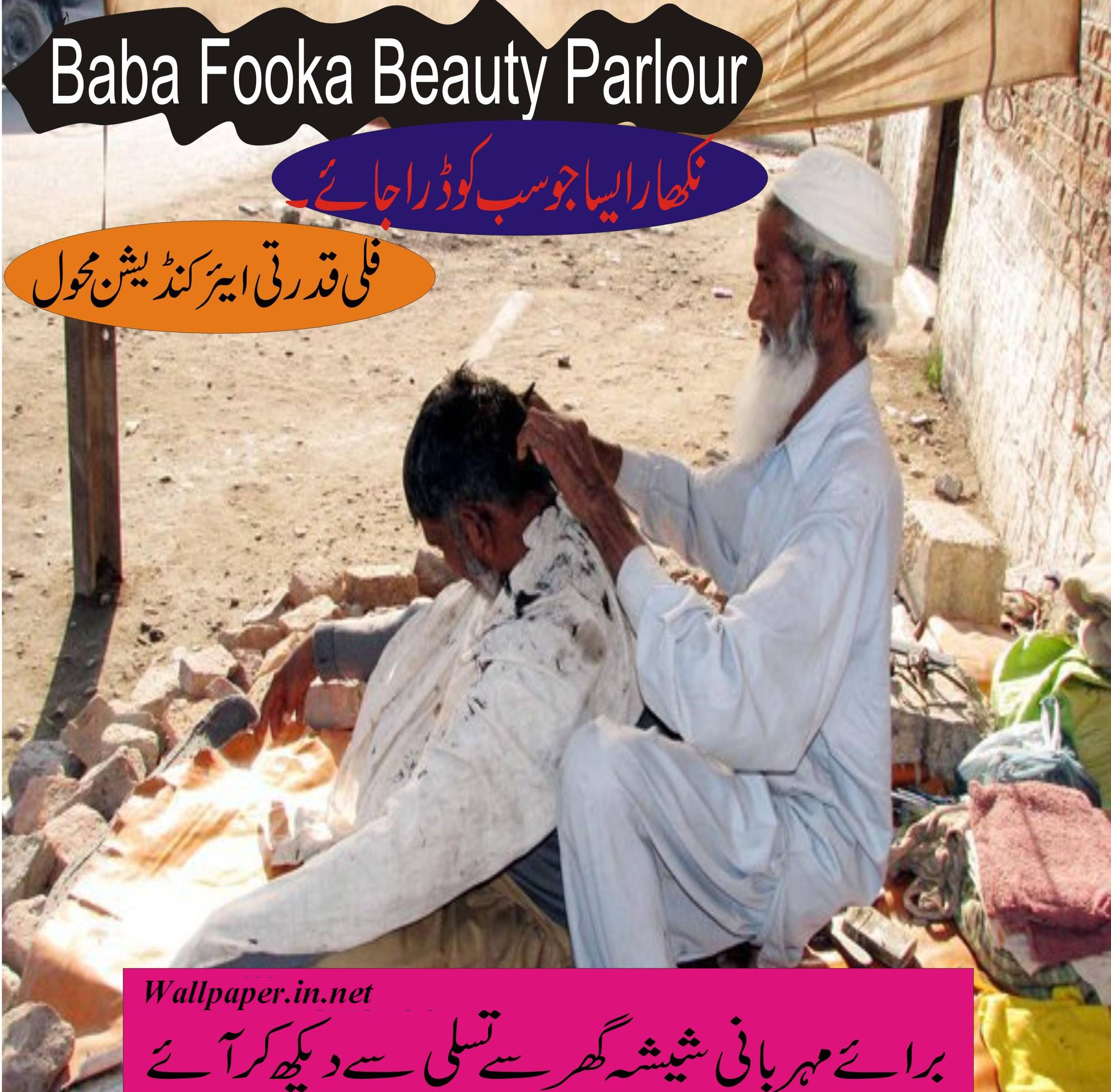 Description: A man getting his hair cut by a man in a white outfit and a pink background with a pink border.