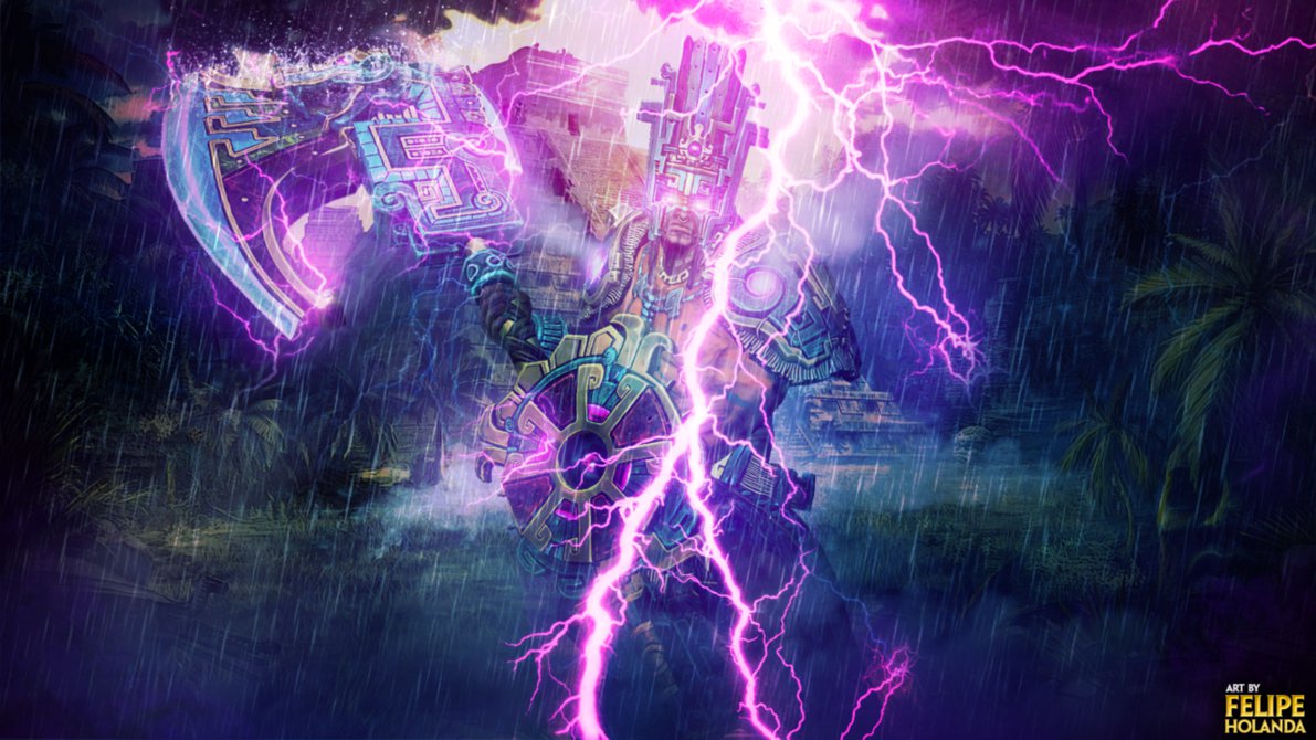 Description: A man with a hammer in his hand and a lightning bolt in his hand.