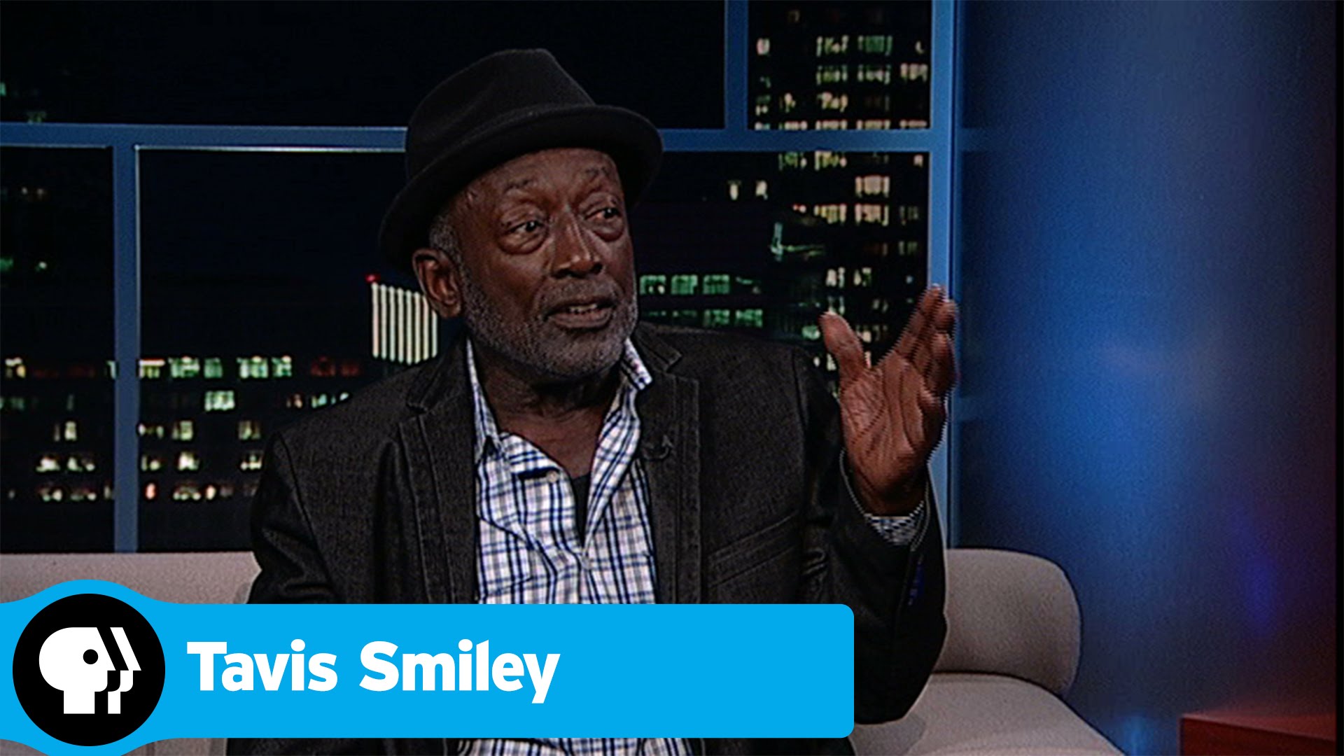 Description: A man in a hat is sitting down on a couch and talking to someone on the phone with a city in the background.
