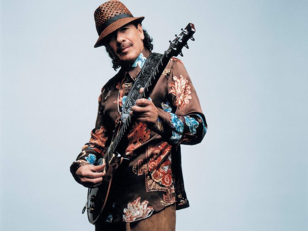 Description: A man with a hat and a guitar in his hands and a blue sky in the background.