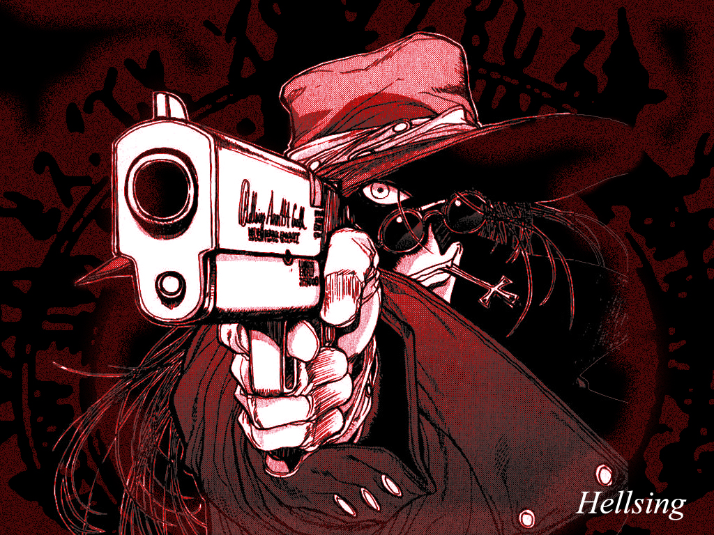 Description: A man in a hat holding a gun in his hand with a gun in his other hand and a hat on his head.