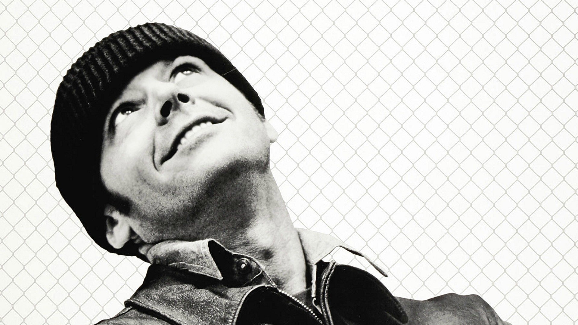 Description: A man with a hat and a jacket looking up at something in the air with his eyes closed and his head tilted.