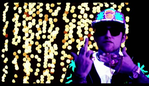 Description: A man wearing a hat and sunglasses making a peace sign with his hands and wearing a purple hat and sunglasses.