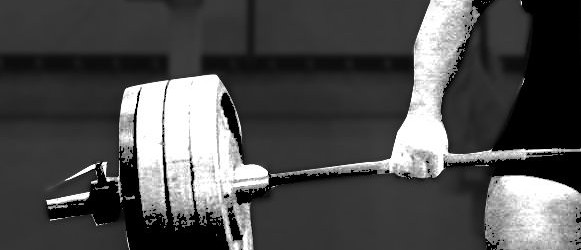 Description: A man holding a barbell in a gym with a black and white background and a black and white photo.