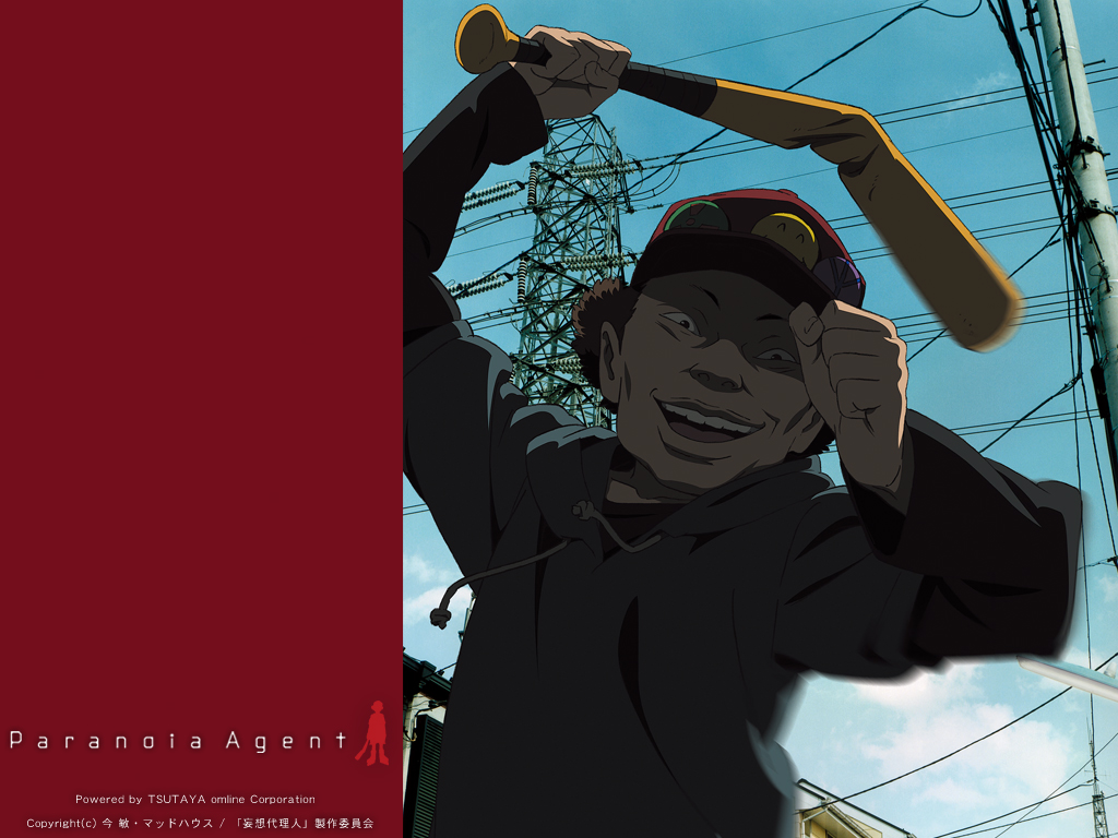 Description: A man holding a baseball bat over his head while standing next to a power line and telephone poles with wires in the background.