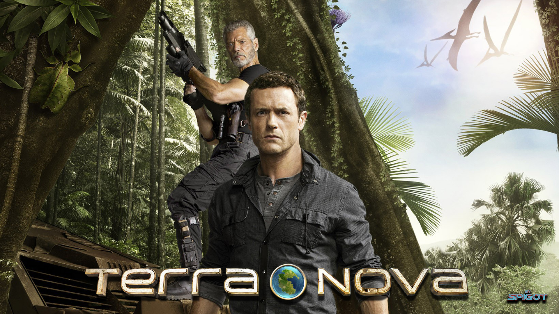 Description: A man holding a gun in front of a jungle scene with a man holding a gun in the foreground.