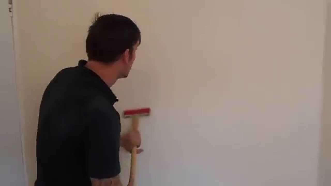 Description: A man holding a paint roller in his hand and a paint roller in his other hand in front of a wall.