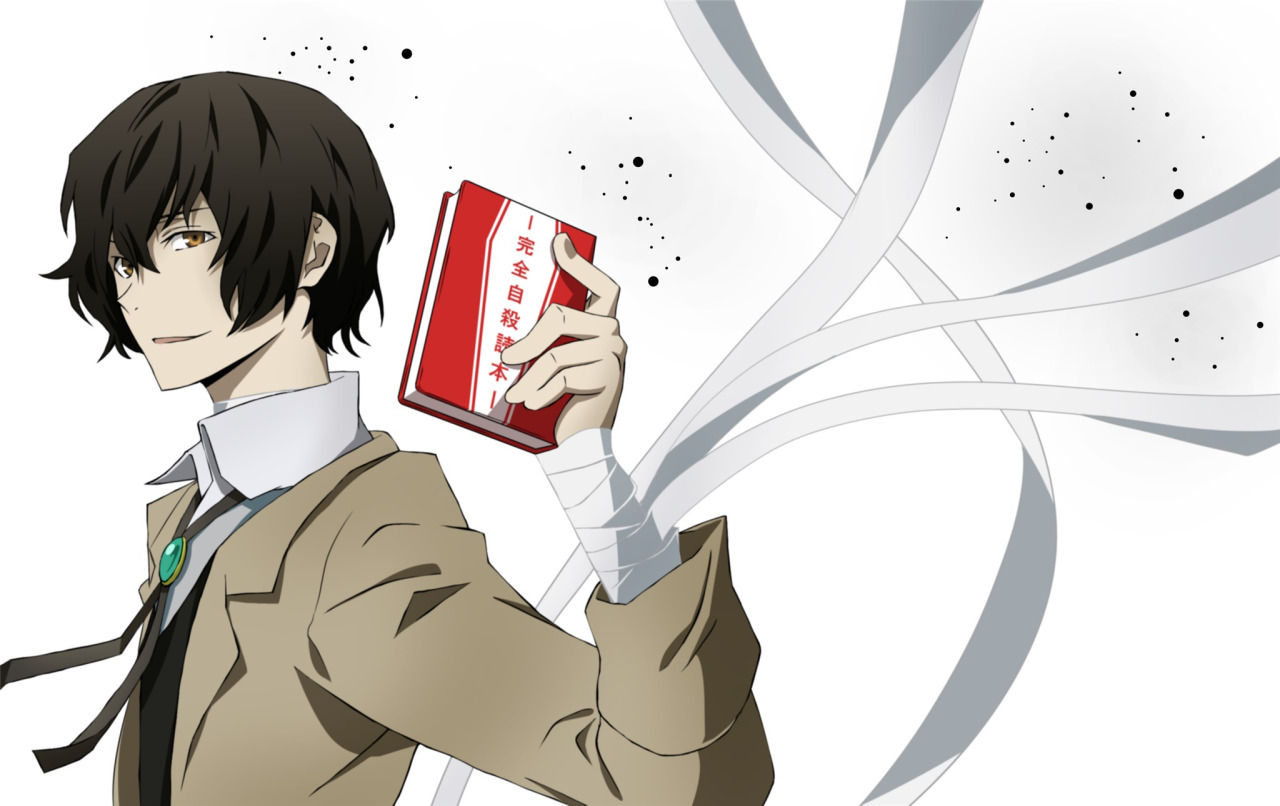 Description: A man holding a red box with a white ribbon around his neck and a white ribbon around his neck.