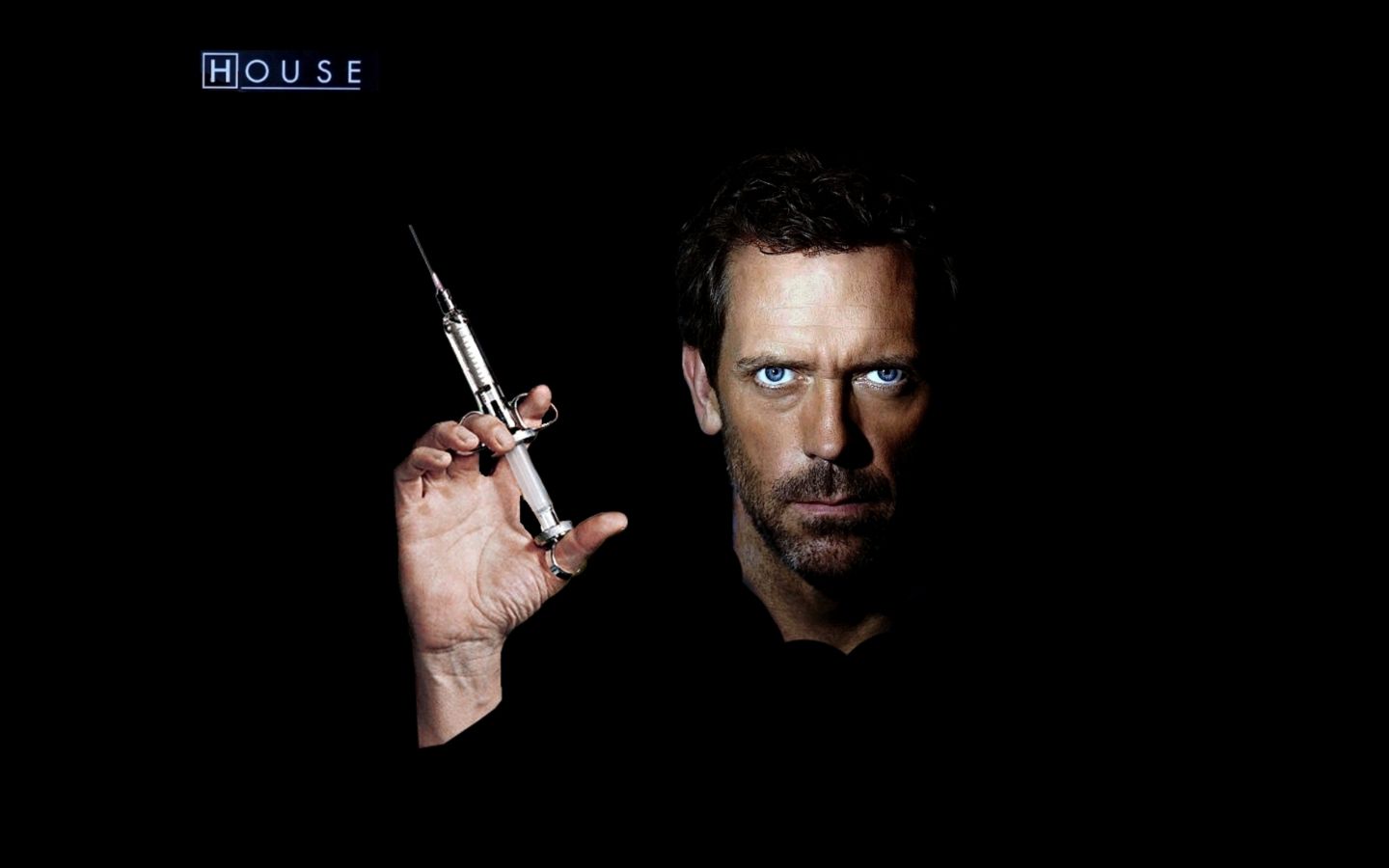 Description: A man holding a sys in his hand with a black background and a house on it's side.