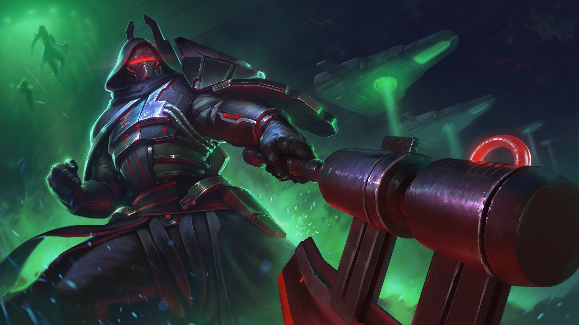Description: A man in a suit holding a red object in his hand and a green light shining on him from behind.