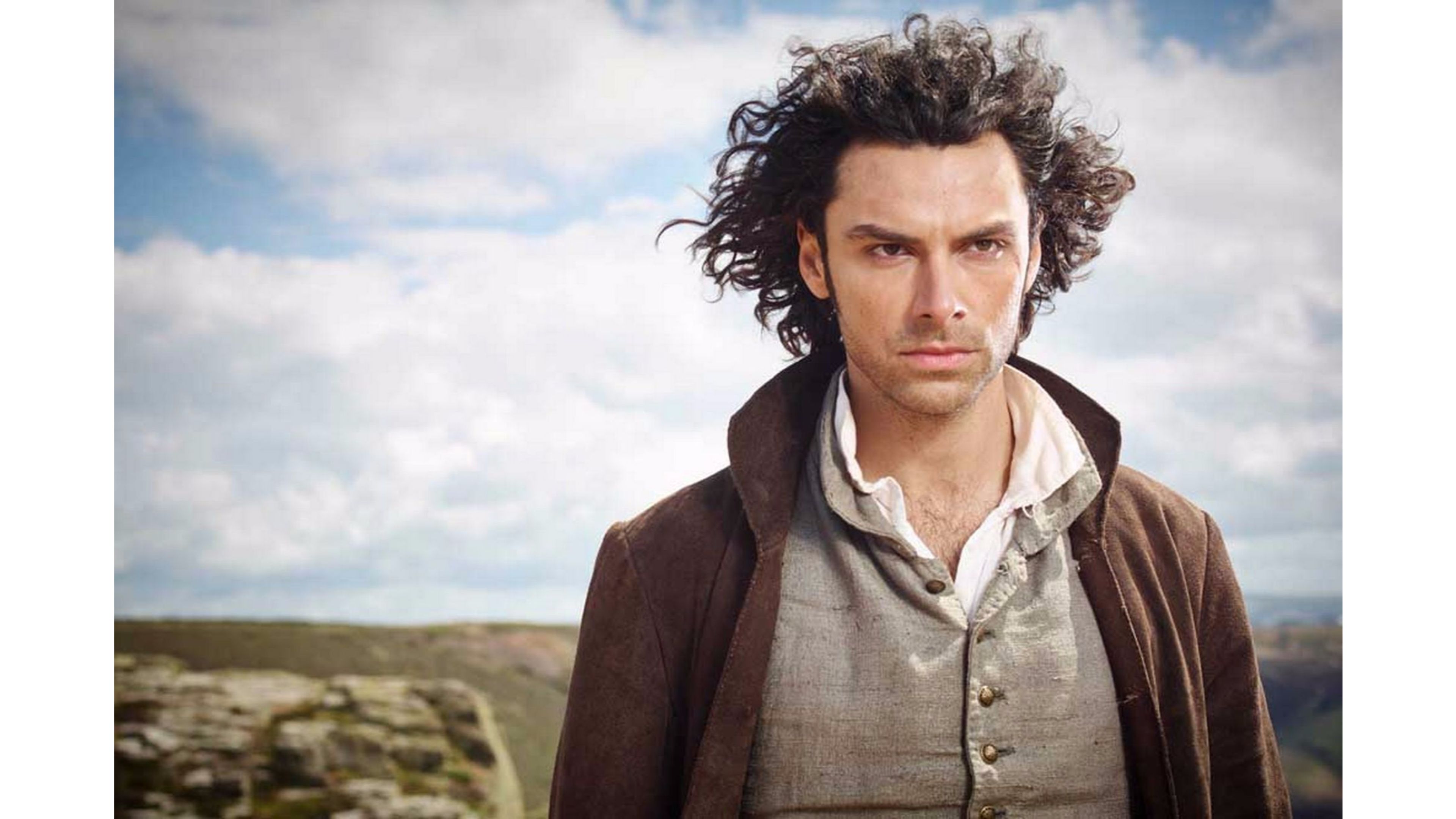 Description: A man with a jacket and a jacket on standing in front of a cliff and a cloudy sky behind him.