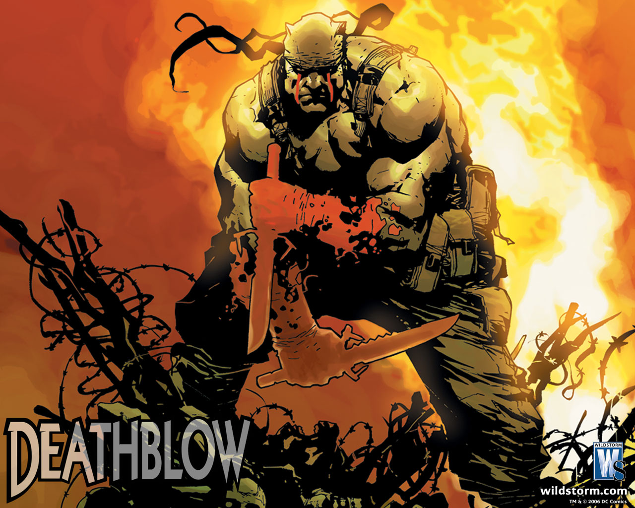 Description: A man with a knife in his hand and a fire in the background with a caption that reads.