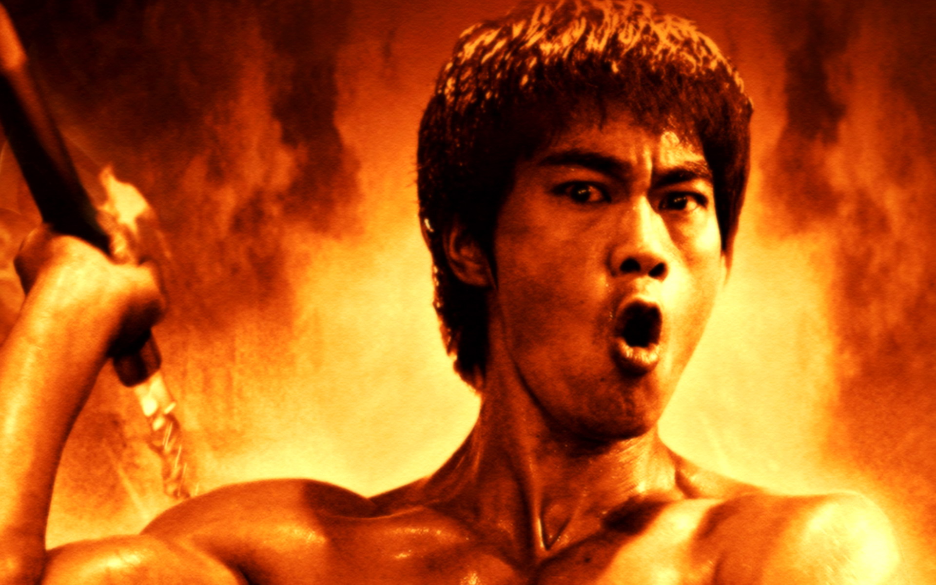 Description: A man holding a knife in his right hand and a fire in the background with a man holding a knife in his left hand.