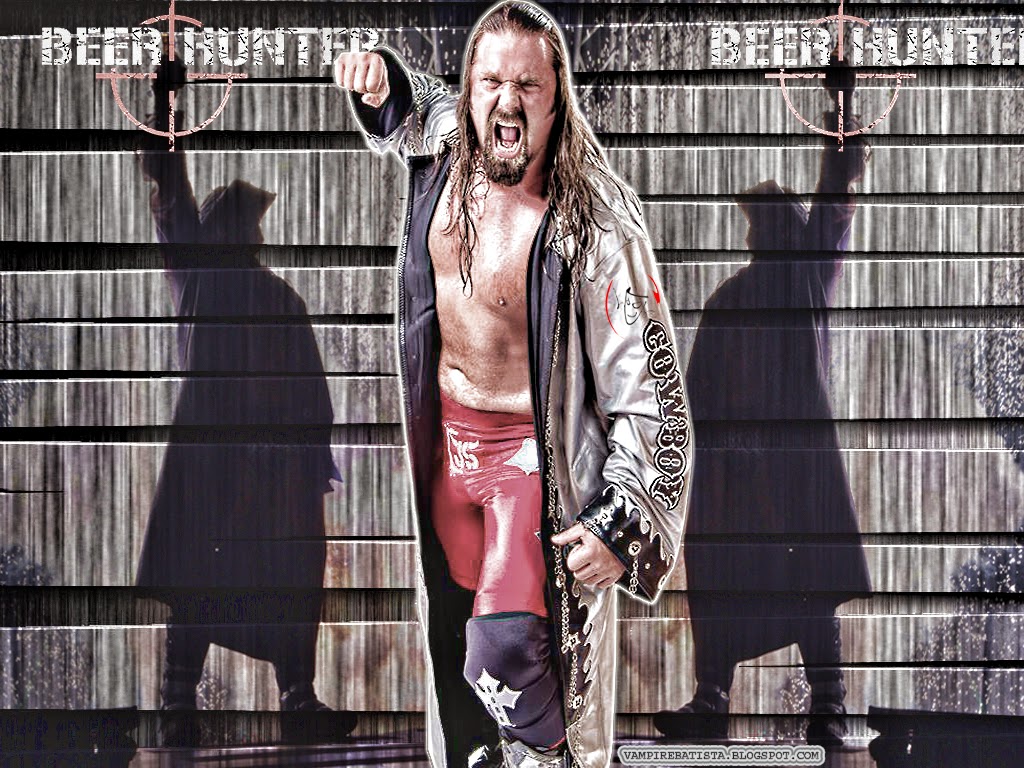 Description: A man with a long beard and a long jacket on holding a skateboard in front of a wall.