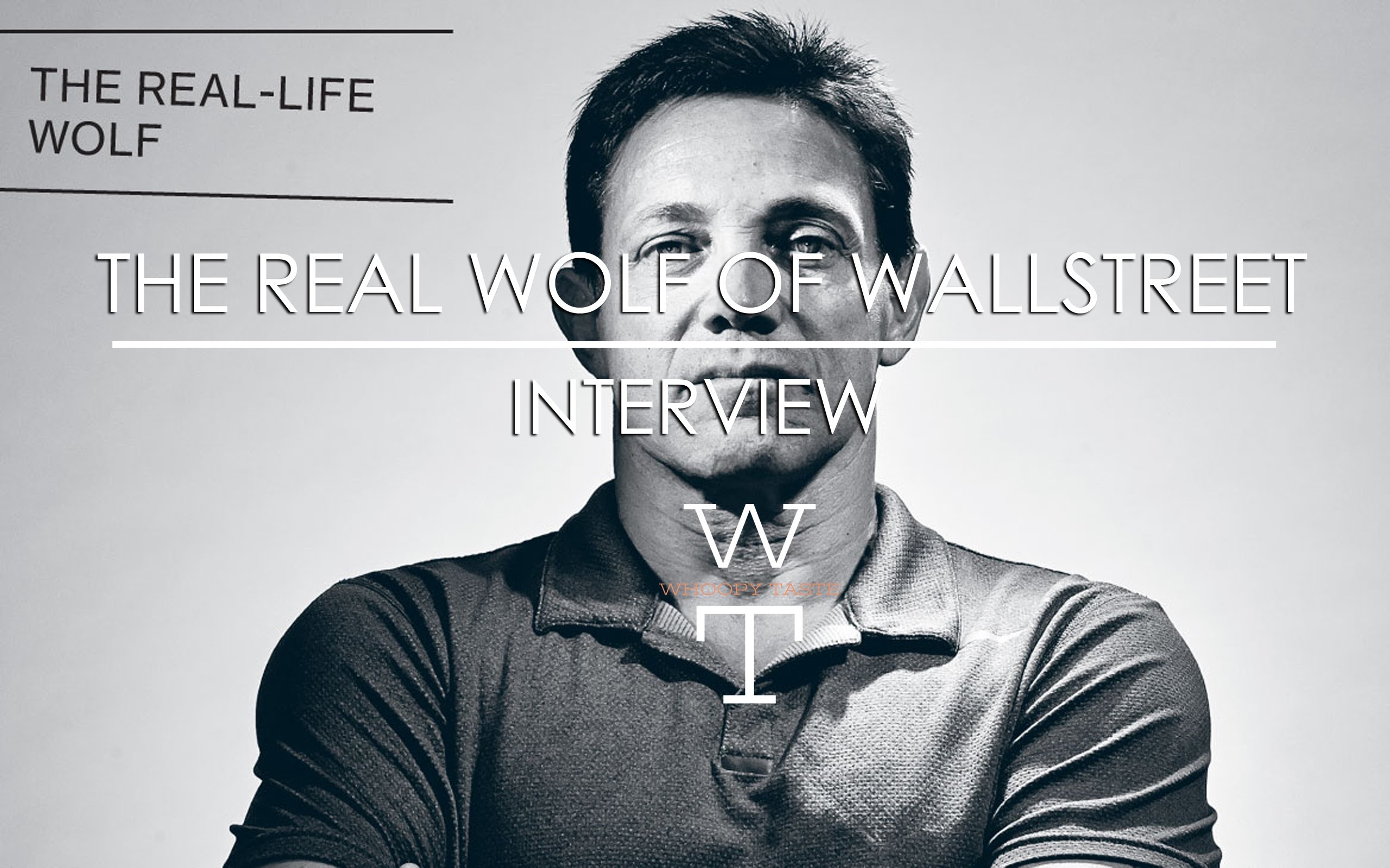 Description: A man is looking up with his hands crossed in front of him and the words the real wolf of wall street on the wall.