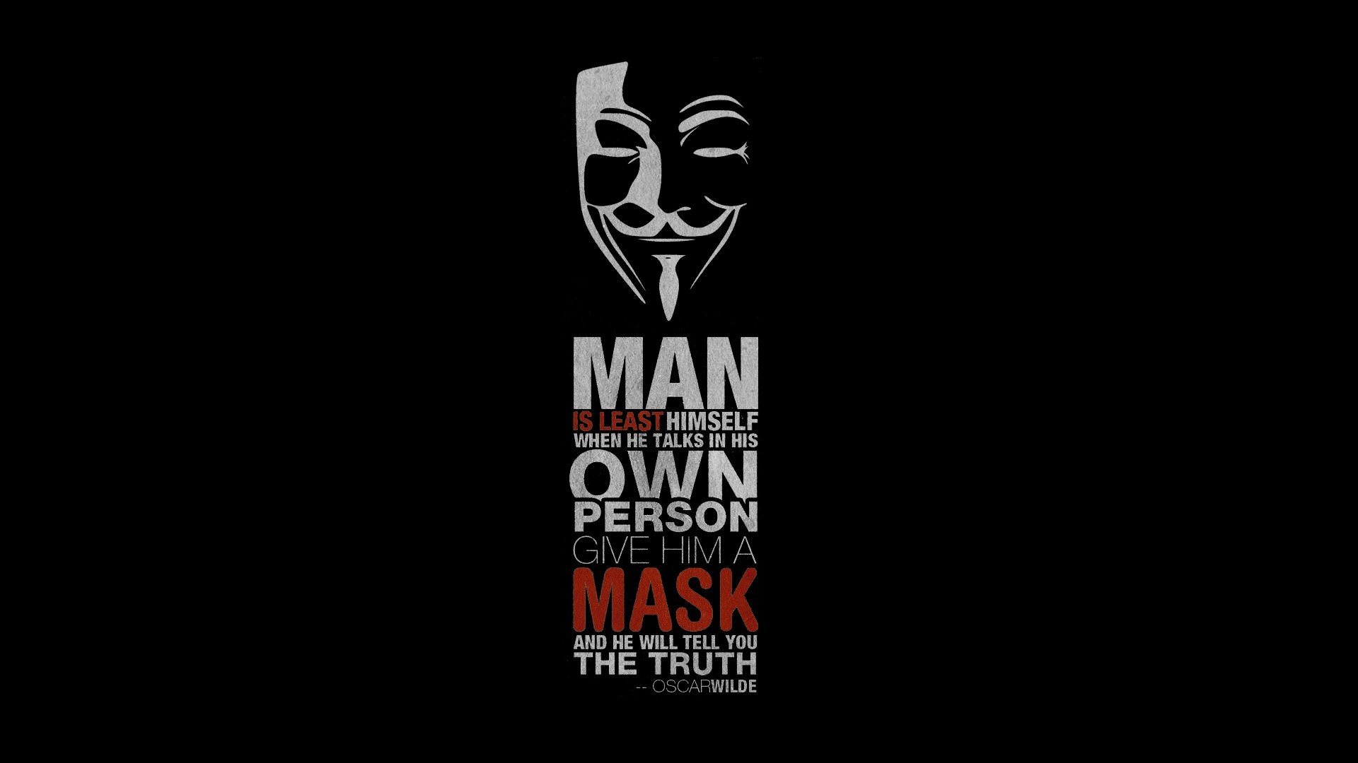 Description: A man with a mask on his face and words below it that say man is the best mindset.