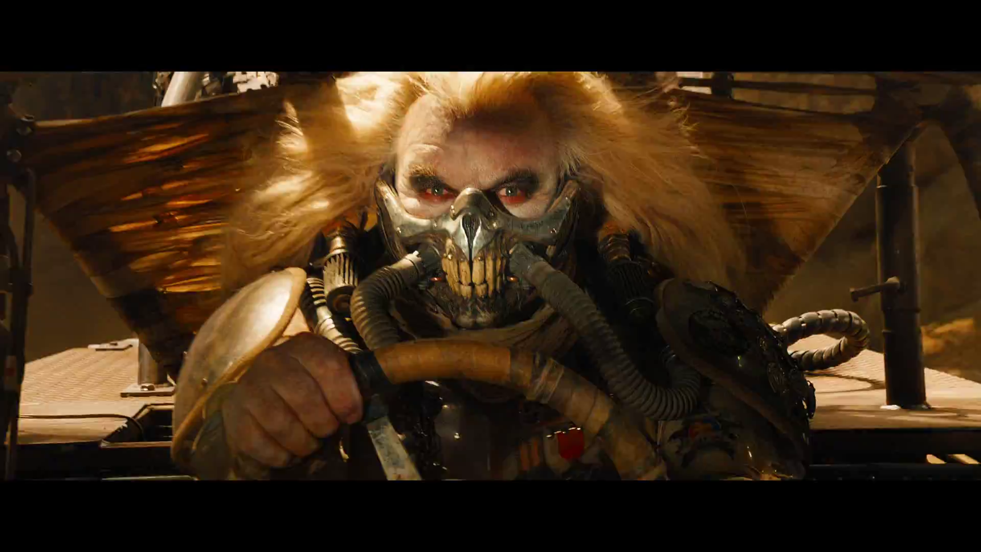 Description: A man with a mask and a large horned face holding a sword in his hand and a large bird in his mouth.