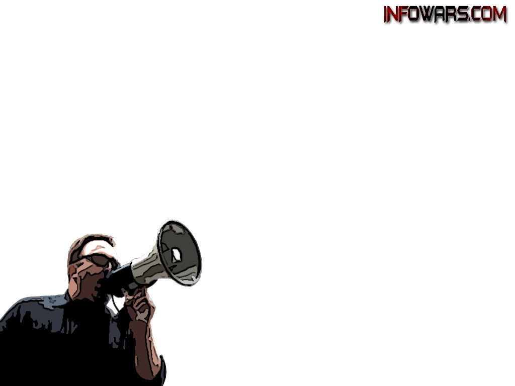 Description: A man holding a megaphone up to his face with a white background and a red and black logo.