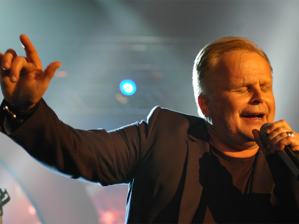 Description: A man with a microphone in his hand and a microphone in his other hand.