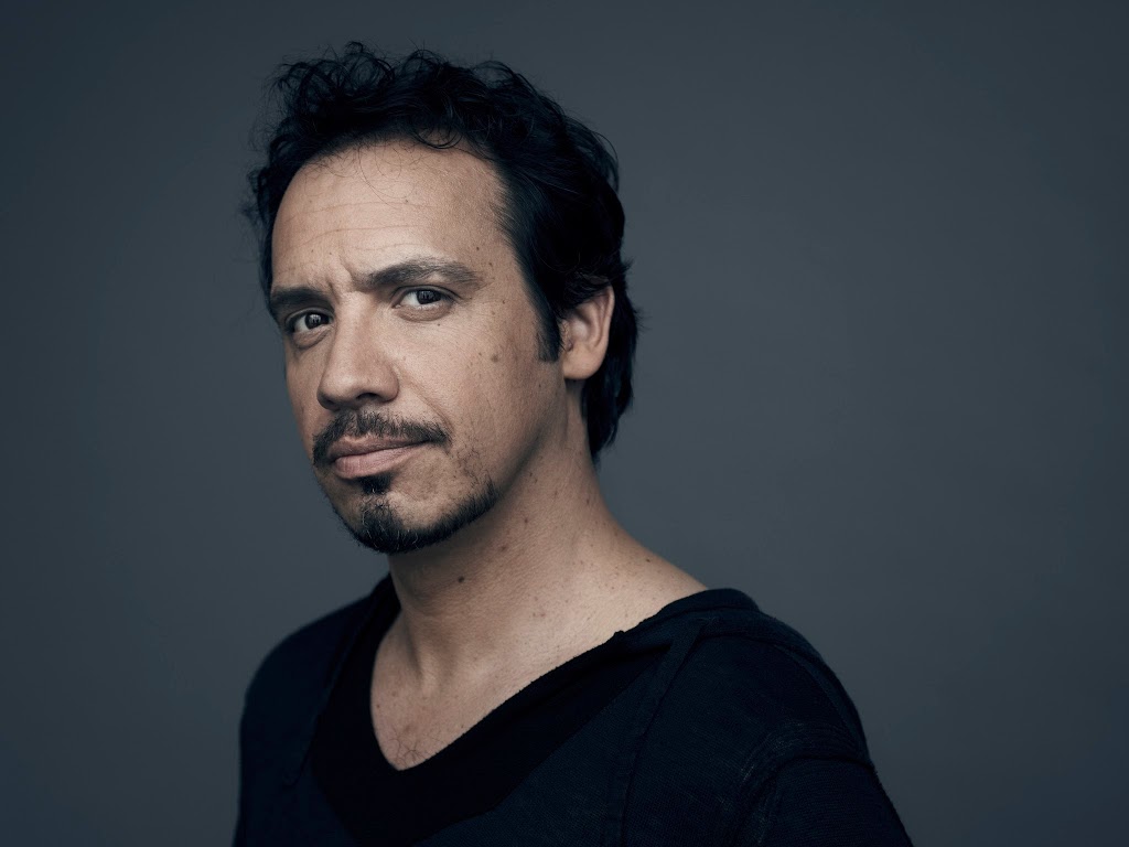 Description: A man with a mustache and black shirt looking at the camera with a serious look on his face and a serious look on his face.