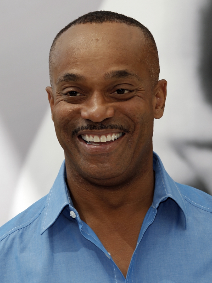 Description: A man with a mustache smiling for the camera with a blue shirt on and a white background behind him.