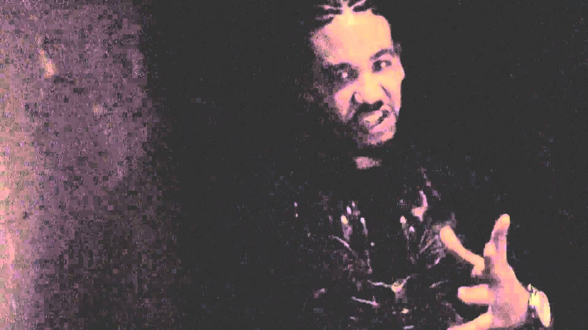 Description: A man making a peace sign with his fingers in the air while wearing a black shirt and a ring.