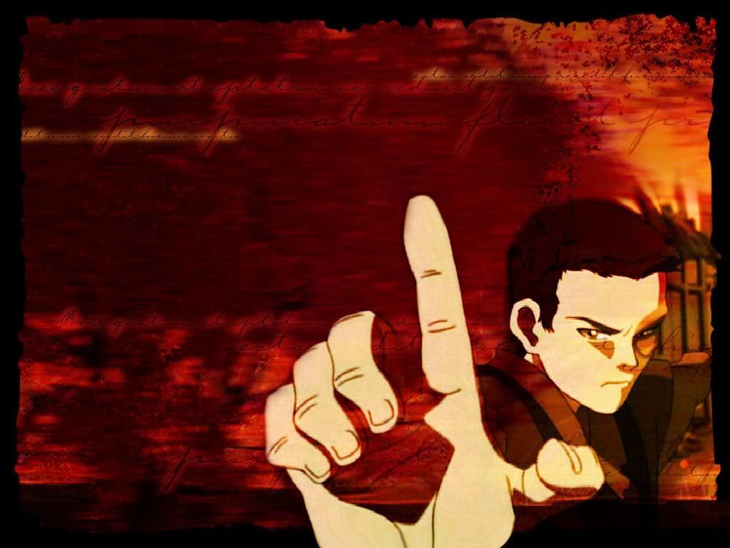 Description: A man holding a peace sign in his hand with a red background behind him and a red background behind him.