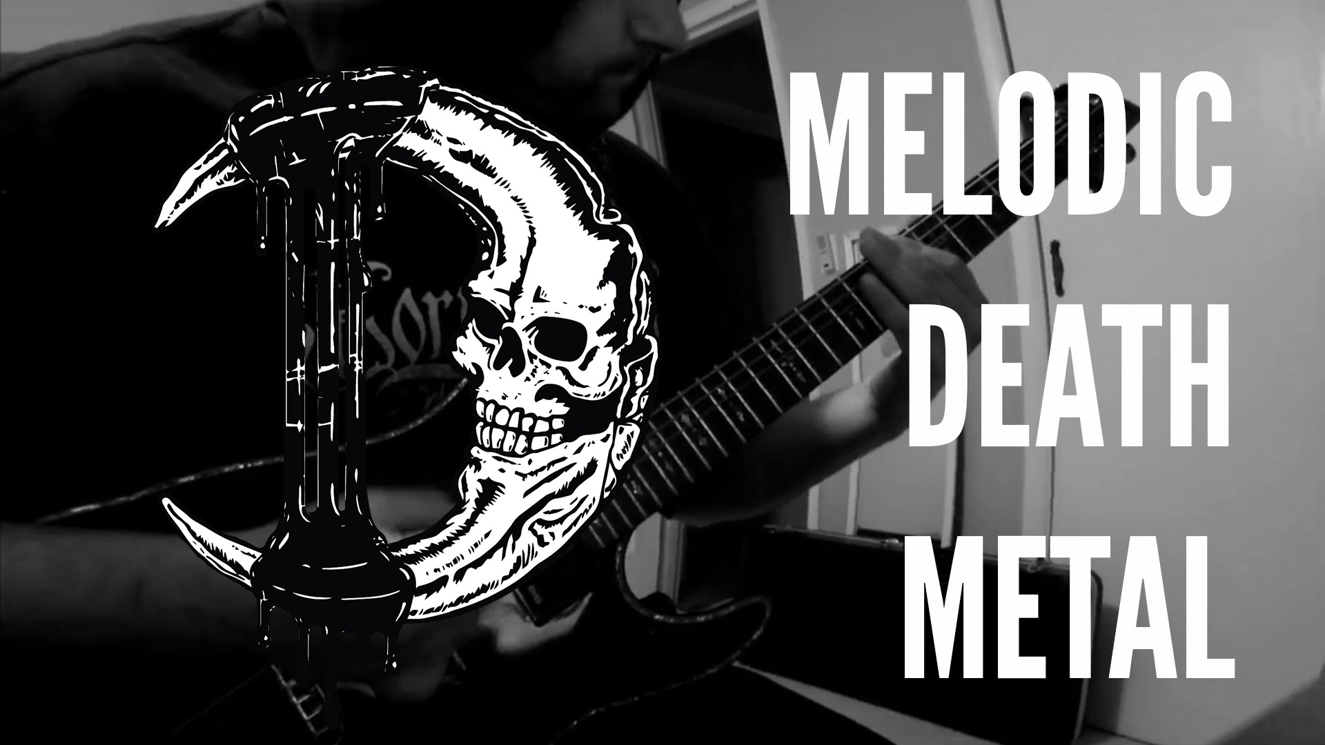 Description: A man playing a guitar with a skull on it and the words melodic death metal on it.