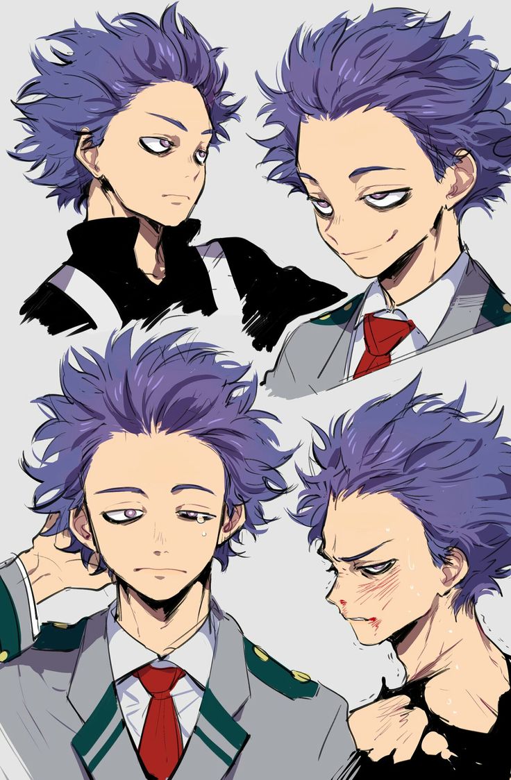 Description: A drawing of a man with purple hair and a tie on his neck and shoulder.