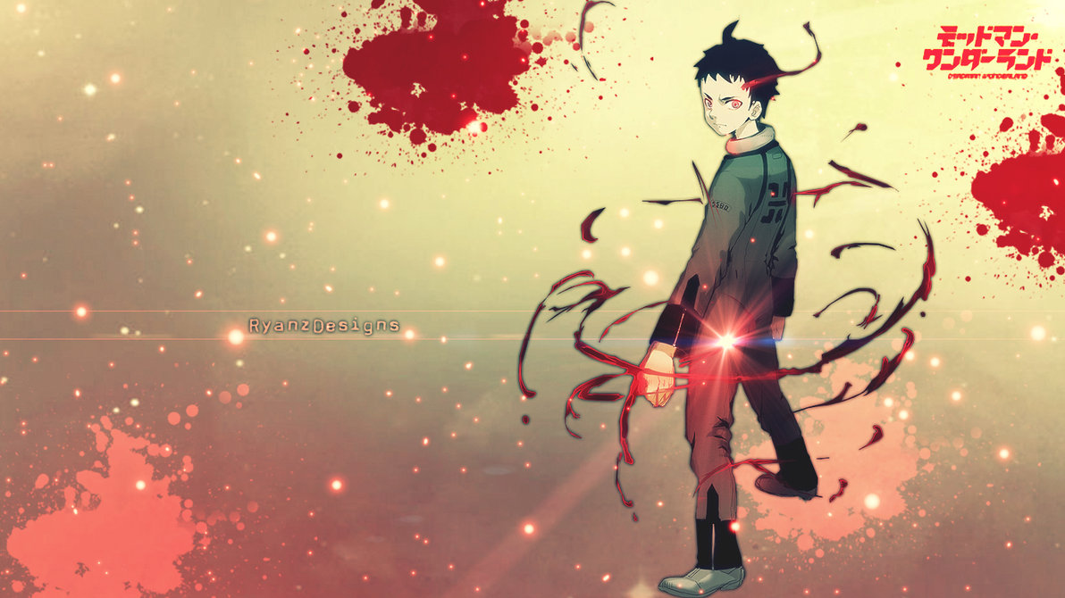 Description: A man standing in front of a red background with blood splatters on it and a red and white background.