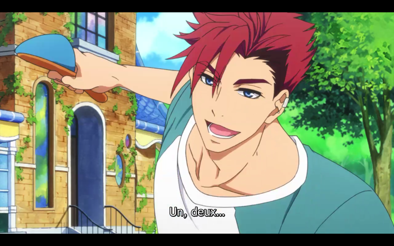 Description: A man with red hair and a white shirt is holding a tennis racket in front of a building.