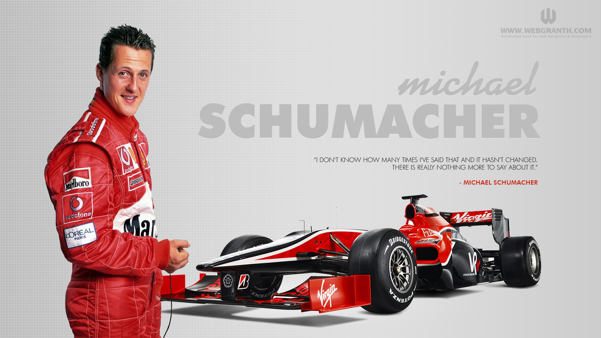 Description: A man in a red suit standing next to a race car with a name on it's side.