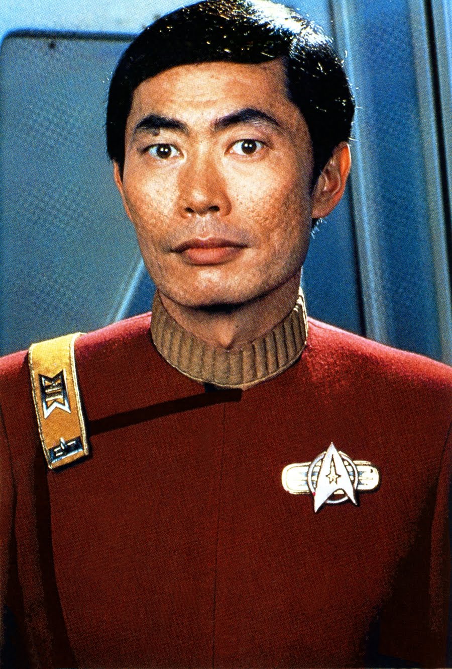 Description: A man in a red uniform with a star trek badge on his chest and a star trek badge on his chest.