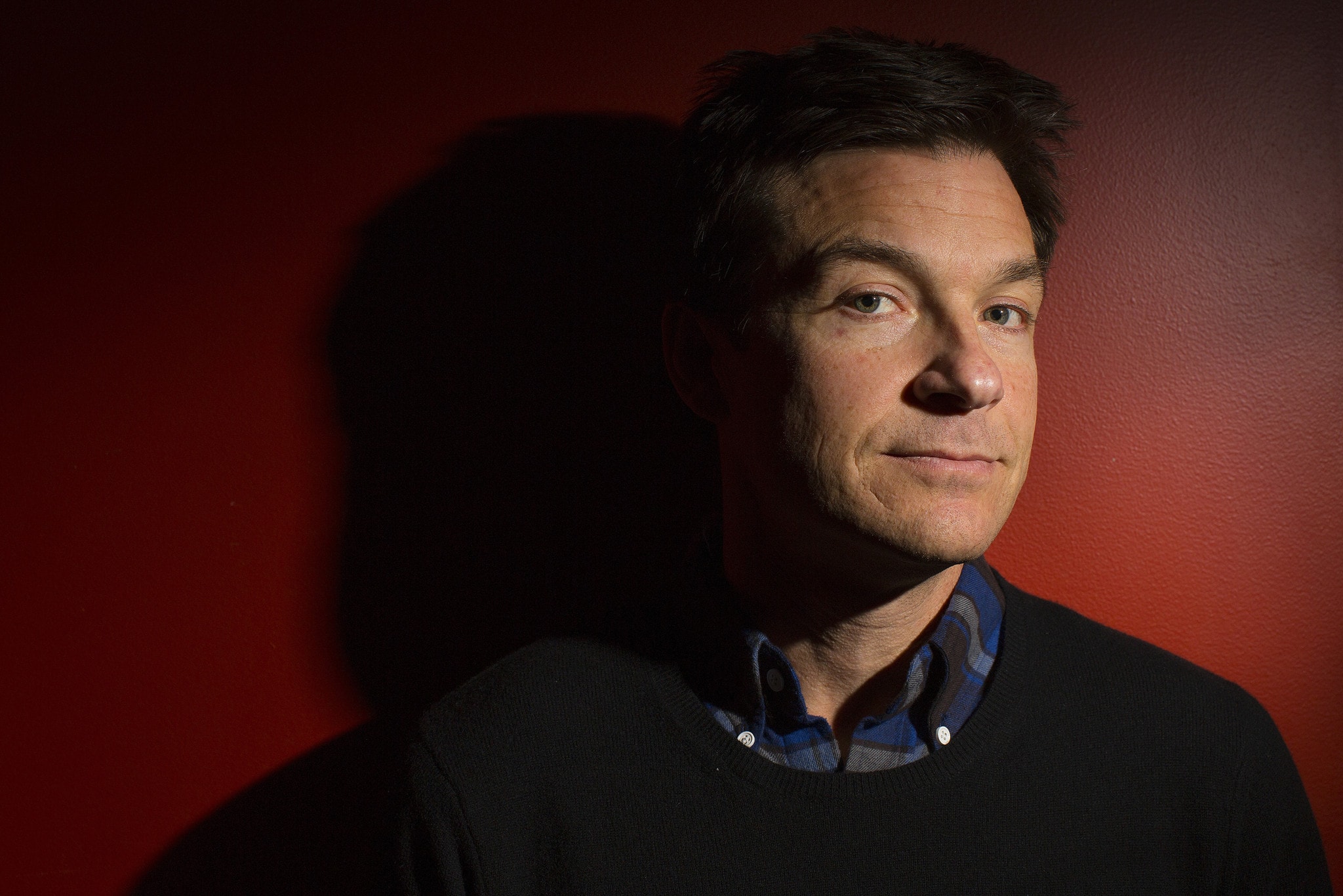 Description: A man standing in front of a red wall with his eyes closed and his head tilted to the side.