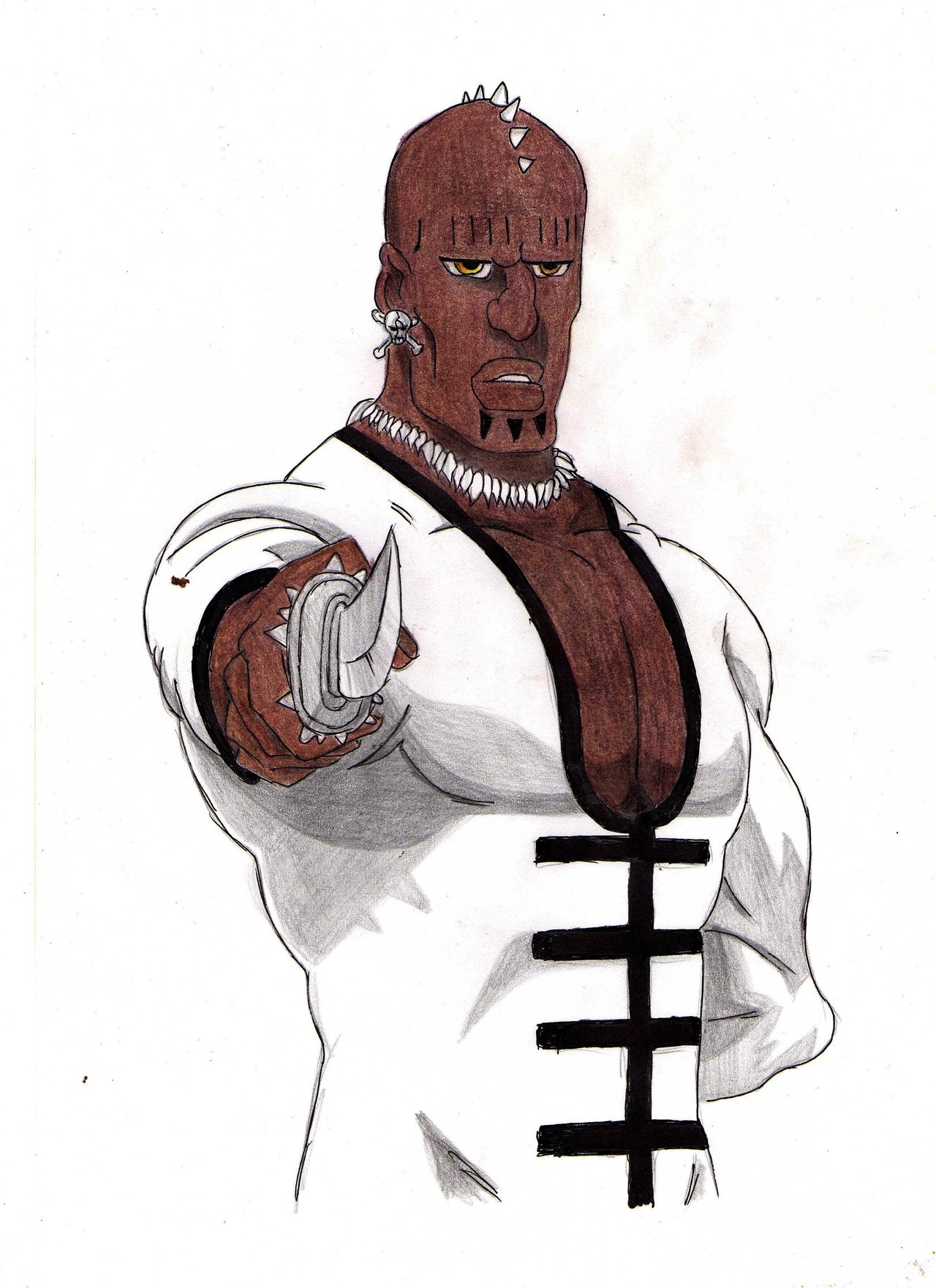 Description: A drawing of a man with a ring on his finger and a ring on his arm.