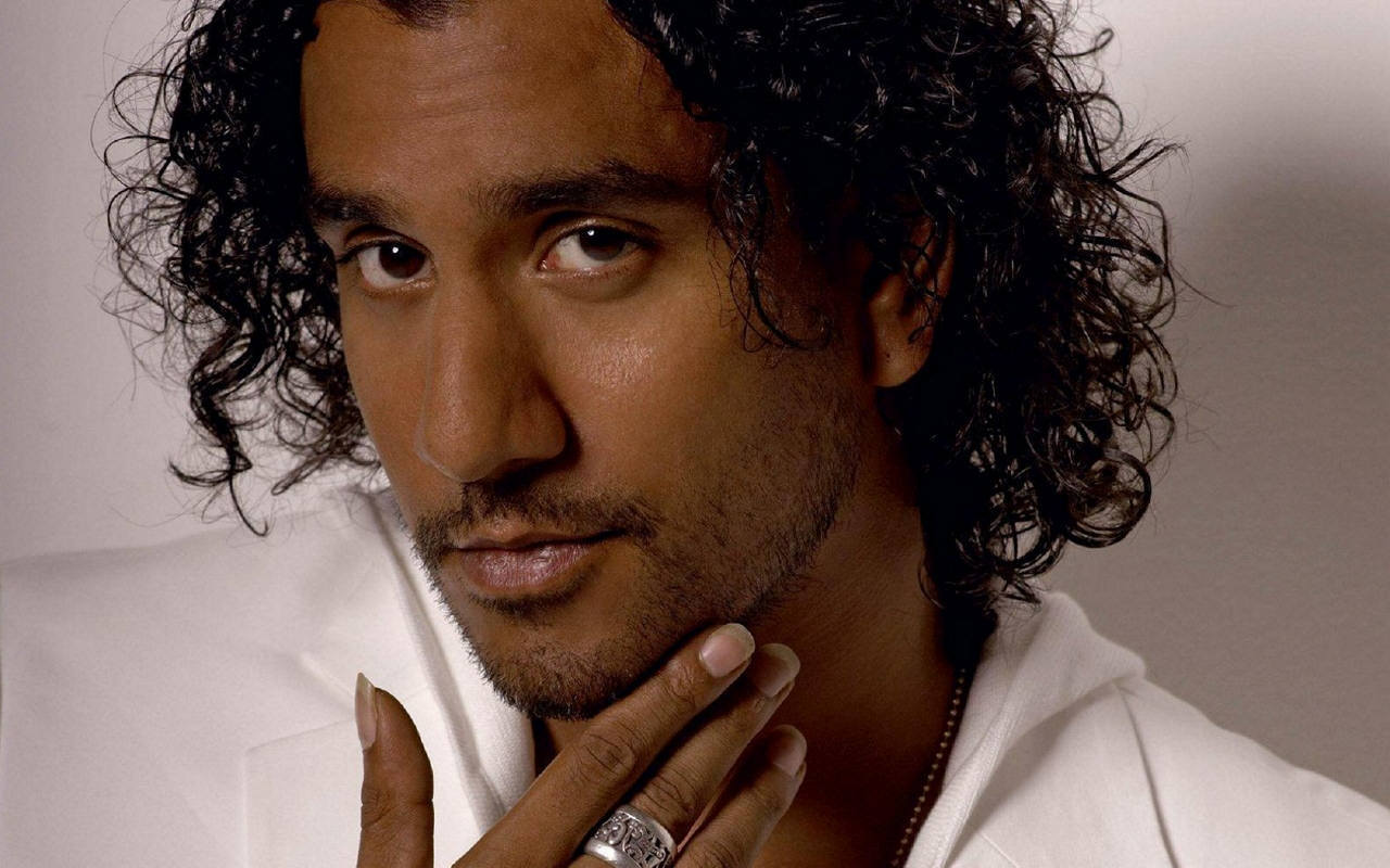 Description: A man with a ring on his finger and a white shirt on his shirt is looking at the camera.