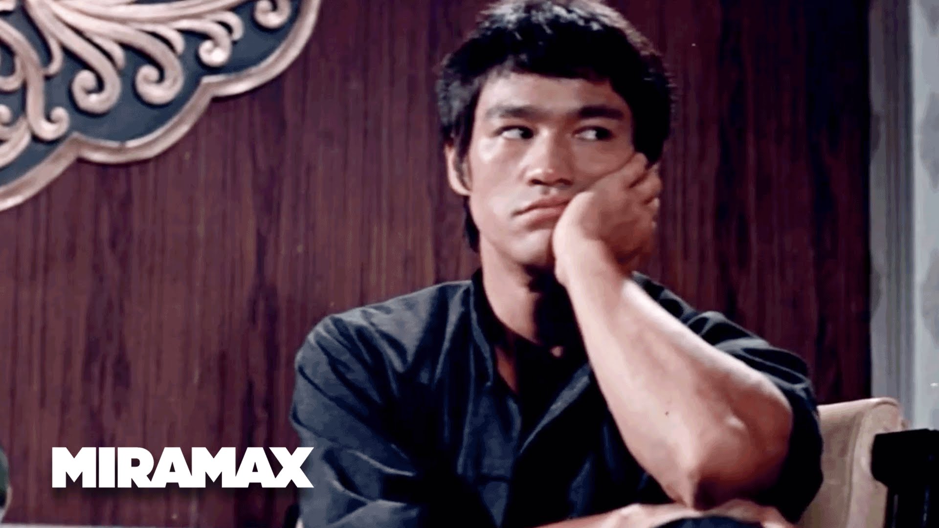 Description: A man sitting in a chair with his hand on his chin and looking up at the camera with a wooden wall behind him.