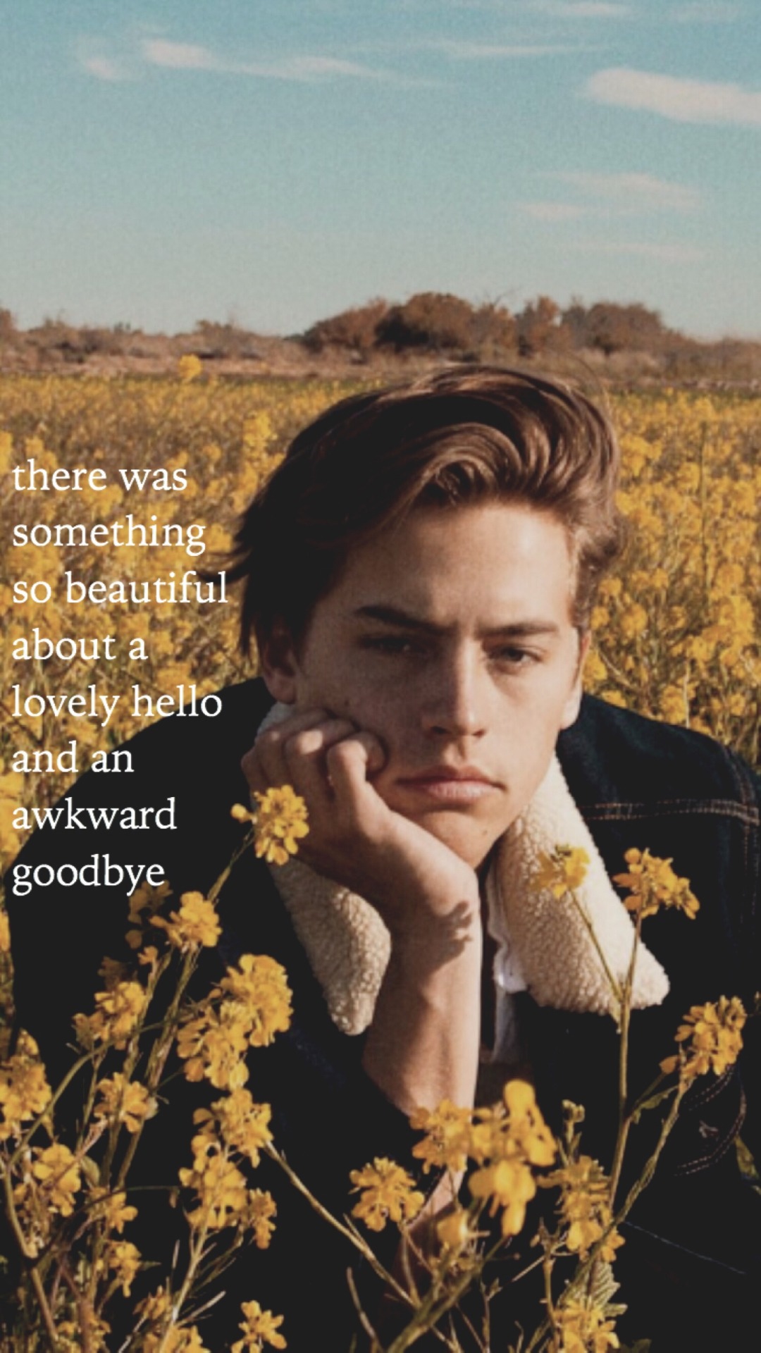 Description: A man sitting in a field of flowers with a quote on it that says.