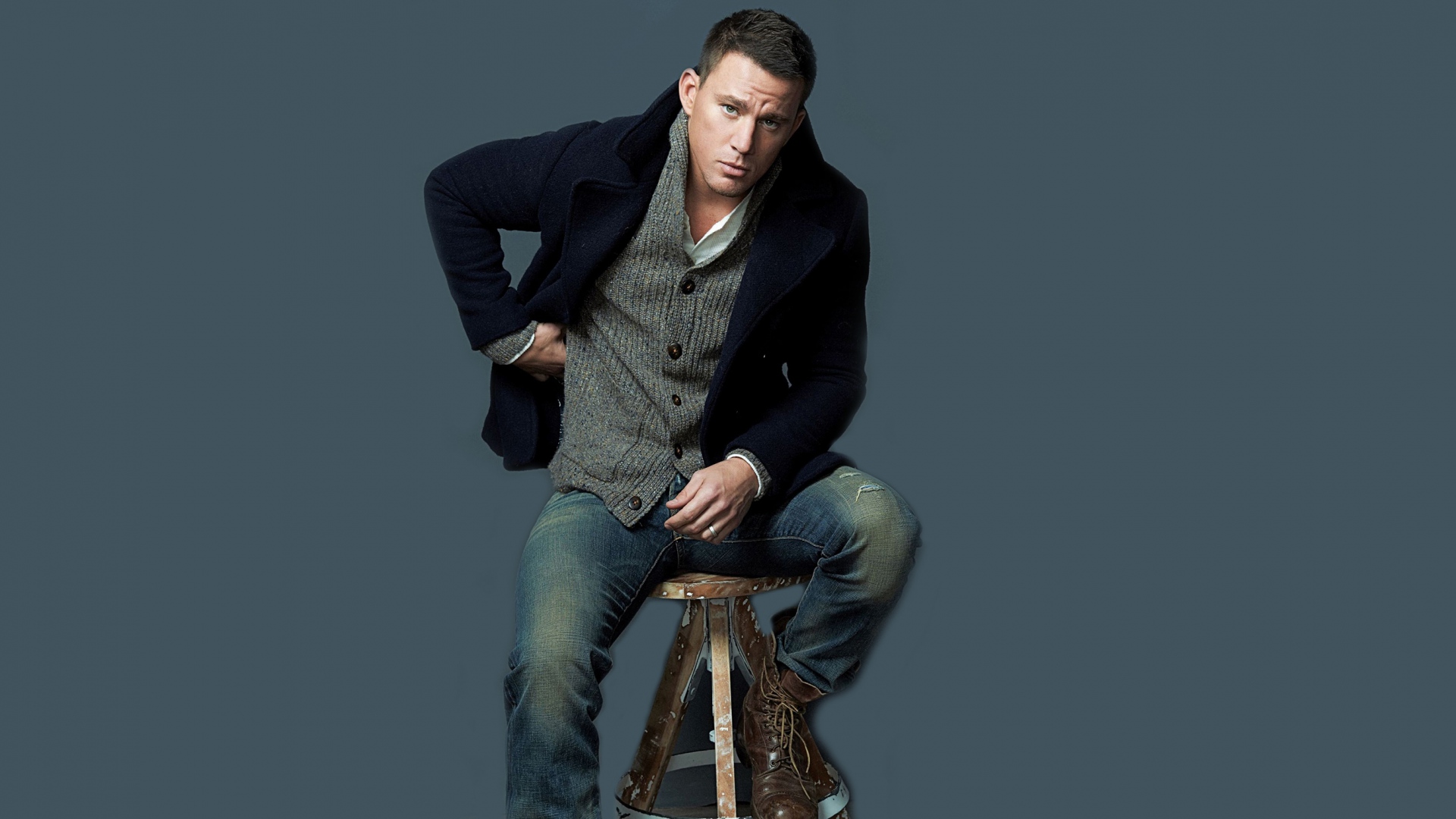 Description: A man sitting on top of a stool wearing a jacket and jeans and a sweater over a sweater and jacket.
