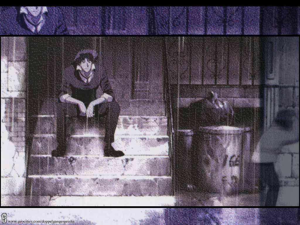 Description: A man sitting on a step next to a trash can and a woman standing next to a trash can.