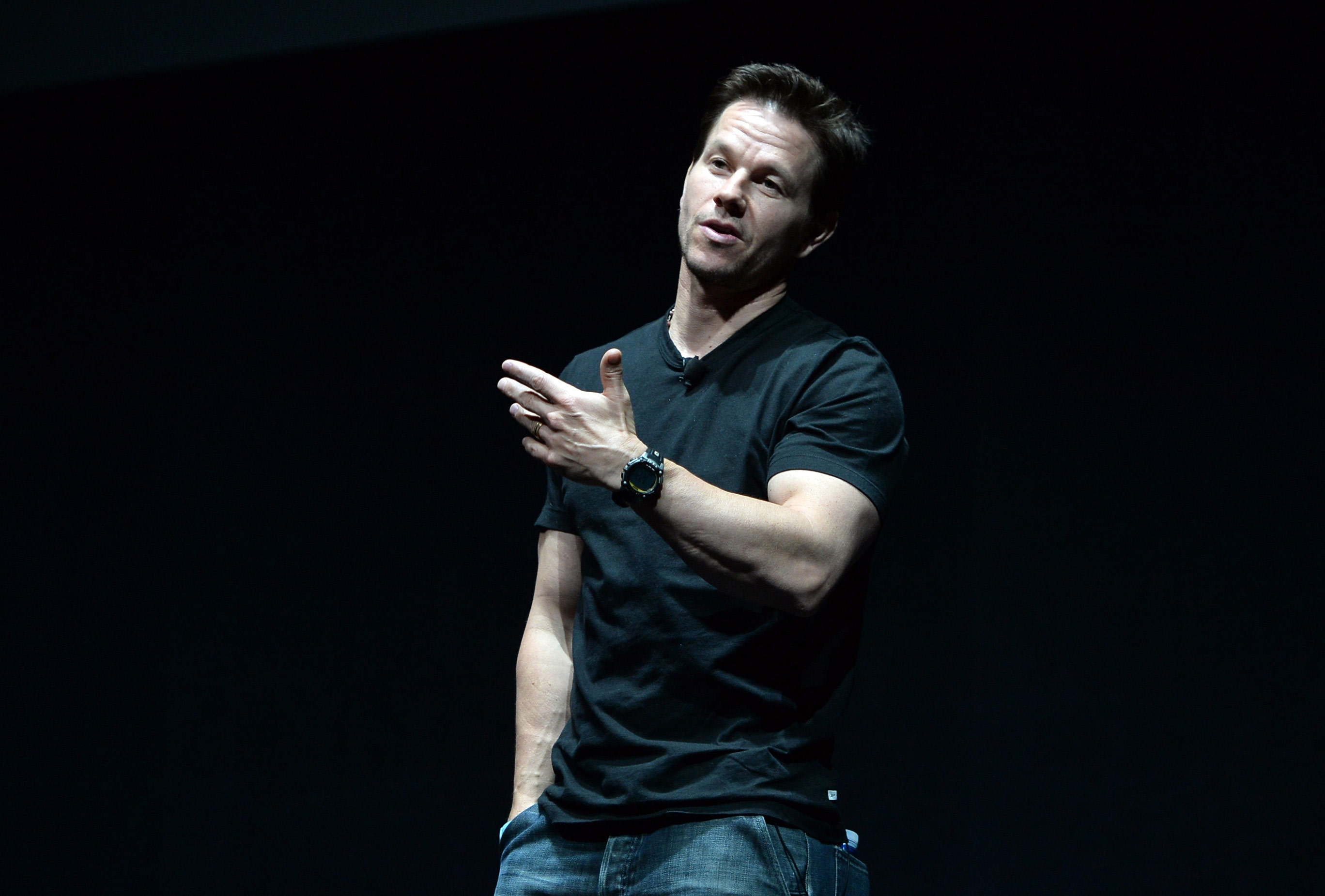 Description: A man standing in front of a black background with his hands folded out and his hands folded out to the side.