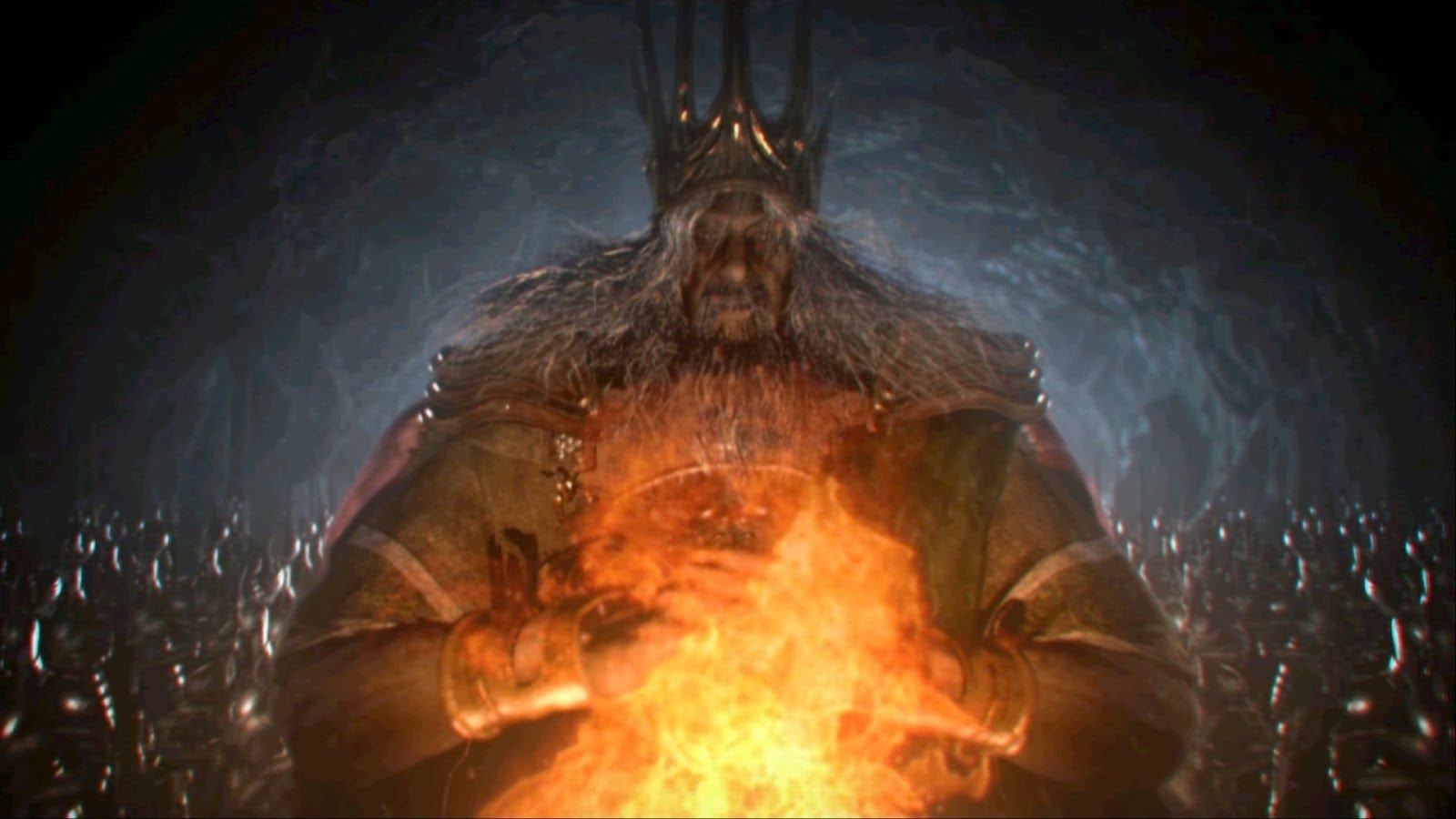 Description: A man standing in front of a fire with his hands in his pockets and a fire in his other hand.