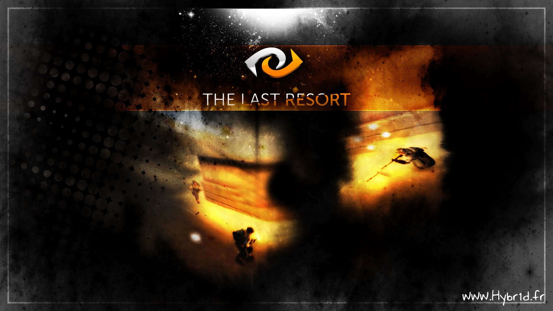 Description: A man is standing in front of a wall with the words the last resort on it and a man is holding an umbrella.