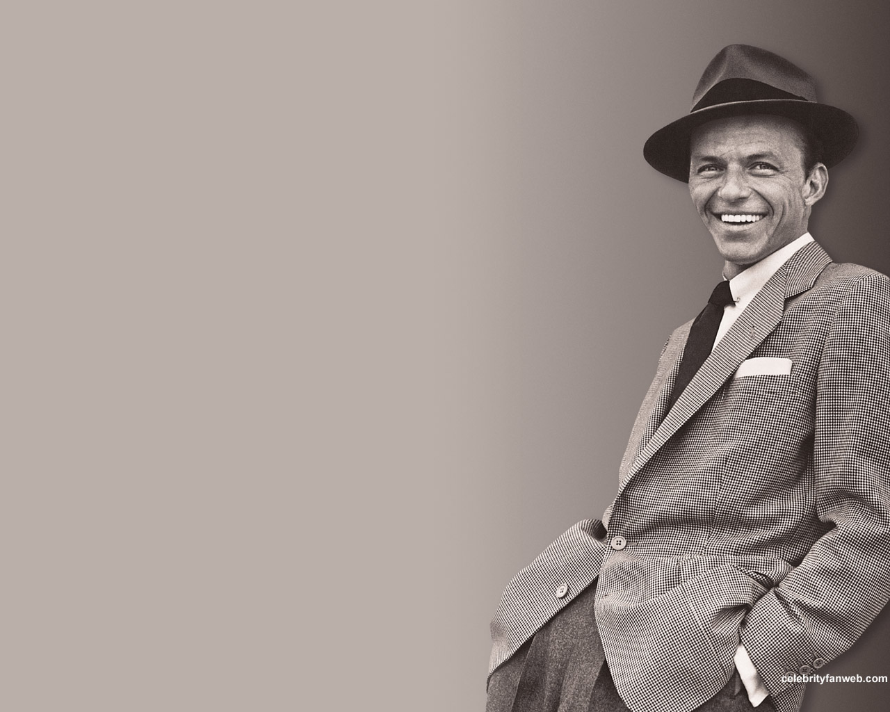 Description: A man in a suit and hat smiling for a picture with a gray background and a black and white photo.